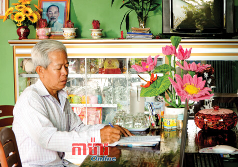 មិនត្រឹមជាឪពុកដ៏ល្អប៉ុណ្ណោះទេ លោកពូ Danh Bá ថែមទាំងជាគ្រូបង្រៀនអក្សរ Khmer ដល់កូនក្មួយជនរួមជាតិ និងព្រះសង្ឃវត្តឡាងយឿ (Ngan Dừa) ទៀតផង។ (ក្នុងរូបថត៖លោកពូ Danh Bá រៀបចំគ្រោងមេរៀនមុនពេលទៅបង្ហាត់)។