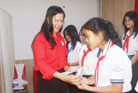 ជូនអាហារូបករណ៍ដល់សិស្ស។