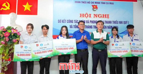 ដោយមានស្នាដៃឆ្នើមក្នុងការសិក្សារៀនសូត្រ Huỳnh Anh (ខាងឆ្វេងបង្អស់) ទទួលបានច្រើនអាហាររូបករដ៏មានតម្លៃ ។