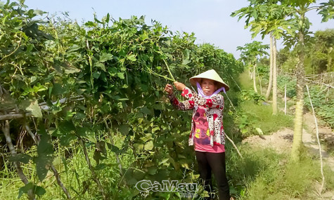 Mỗi năm, chị Phạm Thị Cẩm Tú (Ấp 9, xã Khánh Thuận) thu hoạch hàng trăm triệu đồng từ trồng màu.