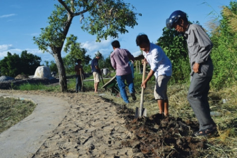 | Ðoàn cán bộ “3 cùng” giúp dân xây dựng lộ giao thông nông thôn ở ấp Tân Phú Thành, xã Tân Hưng Tây. Ảnh: NGỌC HUỆ |