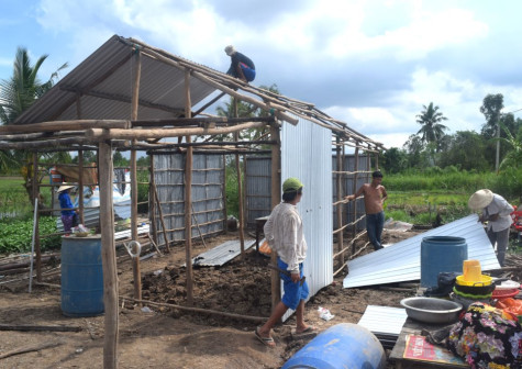 | Các hộ dân bị dông lốc làm sập nhà tại xã Khánh Lâm, huyện U Minh đang khắc phục nhà cửa, ổn định cuộc sống. |