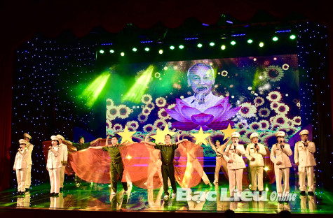 Tiết mục văn nghệ về Bác Hồ do hội viên Chi hội Văn học - Nghệ thuật Công an tỉnh biểu diễn. Ảnh: H.T