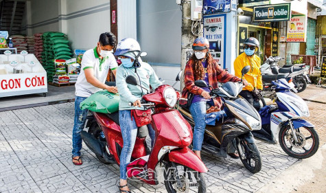 | Tình nguyện viên mang phần ăn đến nhà cho các cô chú lớn tuổi. |