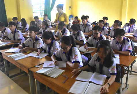 Cô, trò Trường THPT Định Thành (huyện Đông Hải) trong giờ ôn tập môn Ngữ văn. Ảnh: Đ.K.C