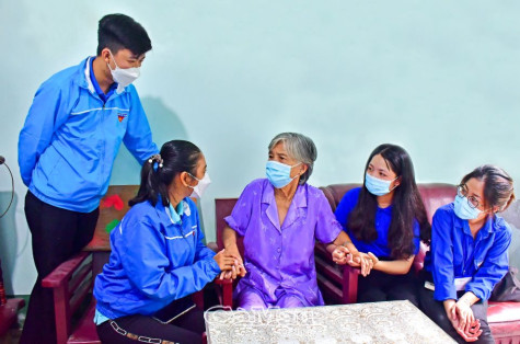 | Ðoàn Thanh niên Phường 9 đến thăm hỏi sức khoẻ mẹ Hiến. |
