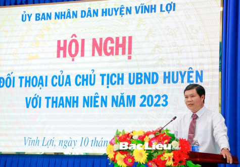 Chiều 10/11, Chủ tịch UBND huyện Vĩnh Lợi đã có buổi đối thoại với đoàn viên - thanh niên (ĐV-TN) năm 2023. Tham dự chương trình đối thoại có hơn 100 đại biểu là cán bộ, ĐV-TN trên địa bàn huyện.