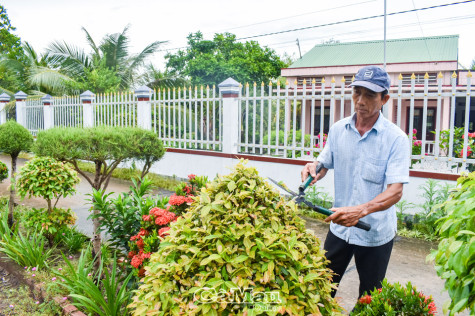 Ông Lương Văn Bớt, ấp Tân Phú Thành, xã Tân Hưng Tây chăm chút cảnh quan xung quanh nhà.