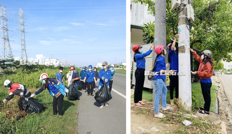 Đoàn viên - thanh niên Phường 7 ra quân làm vệ sinh môi trường và xử lý quảng cáo rác. Ảnh: T.A