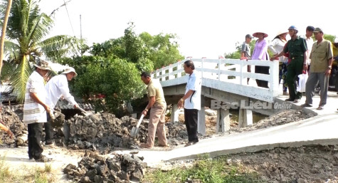 Hội viên Hội CCB TX. Giá Rai góp ngày công trong phong trào xây dựng nông thôn mới.