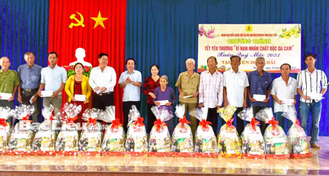 Lãnh đạo Hội Nạn nhân chất độc da cam/dioxin tỉnh và Huyện ủy Đông Hải trao quà tết Nguyên đán Quý Mão 2023 cho nạn nhân chất độc da cam/dioxin huyện Đông Hải.