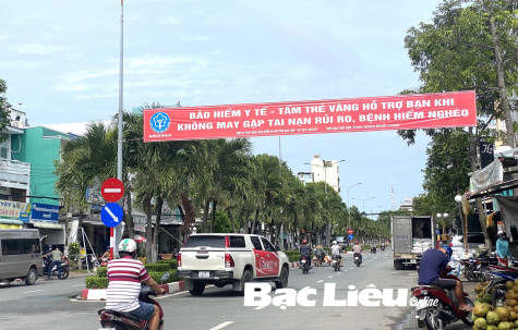 Băng-rôn tuyên truyền người dân tham gia bảo hiểm y tế trên địa bàn TP. Bạc Liêu.