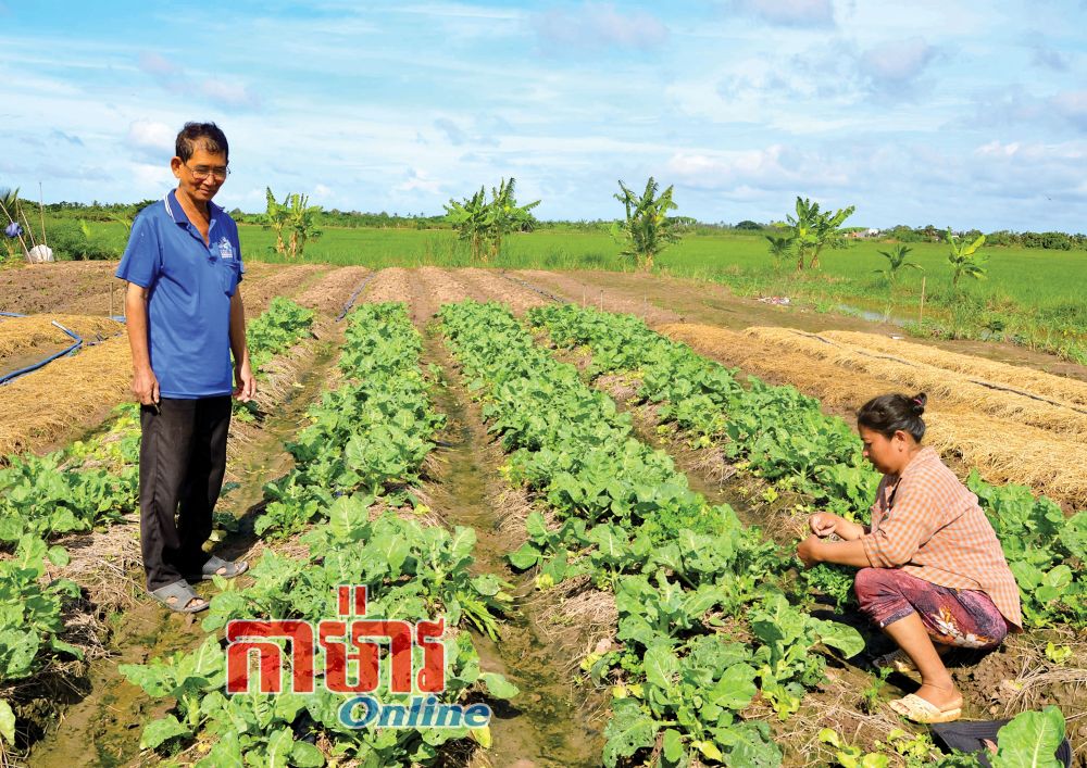 ប្រធានសាខាសមាគមកសិករភូមិ ទស្សនាទម្រង់ដាំបន្លែរបស់គ្រួសារបងស្រី THạch Thị Đô La។