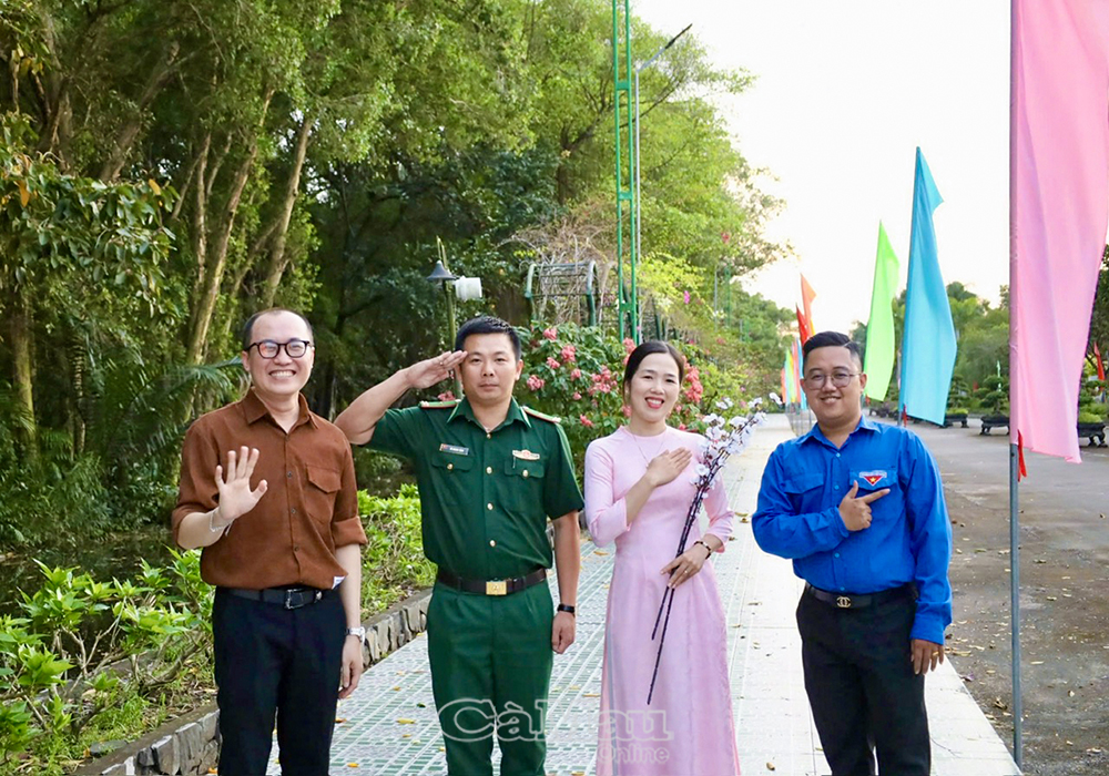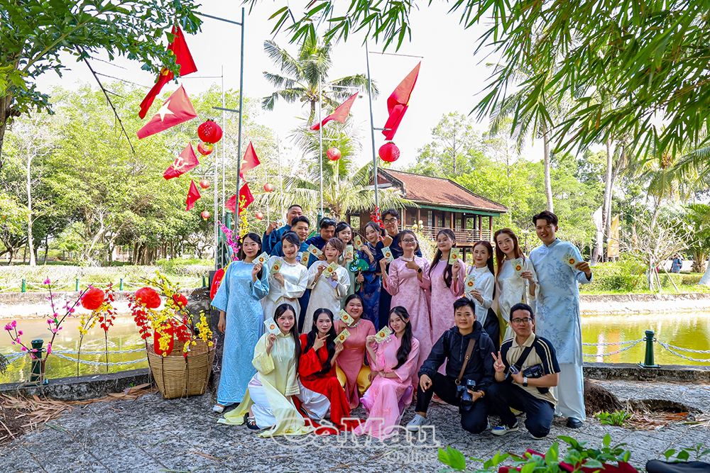 Giáo dục và bồi đắp tinh thần yêu nước cho học sinh, sinh viên thông qua các hoạt động về nguồn, tham quan địa chỉ đỏ. (Trong ảnh: Học sinh tham quan và chụp ảnh lưu niệm trong khuôn viên Khu tưởng niệm Hồ Chí Minh (phường An Xuyên) dịp Tết đến, xuân về).