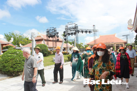 Một đoàn khách đến từ TP. Hồ Chí Minh tham quan Khu lưu niệm nghệ thuật Đờn ca tài tử Nam Bộ và nhạc sĩ Cao Văn Lầu (Phường 2, TP. Bạc Liêu).