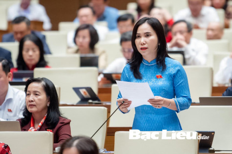 Đại biểu Lê Thị Ngọc Linh (đoàn ĐBQH tỉnh Bạc Liêu) chất vấn tại nghị trường. Ảnh: T. Thúy
