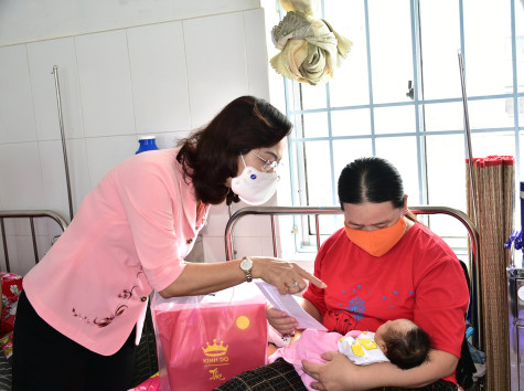 Đồng chí Lê Thị Ái Nam - Phó Bí thư Thường trực Tỉnh ủy tặng quà Trung thu cho trẻ em. Ảnh: Sở LĐ-TB&XH cung cấp