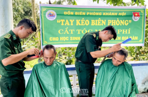 Em Nguyễn Văn Quyết, học sinh lớp 4A, Trường Tiểu học Lê Văn Tám (Ấp 7, xã Khánh Hội) vừa được các chú biên phòng cắt tóc xong, phấn khởi cho biết: “Nghe nhà trường thông báo hôm nay có các chú ở Ðồn biên phòng đến cắt tóc miễn phí, chúng con vui lắm. Con có mặt từ sớm, các chú biên phòng cắt tóc rất đẹp, lại còn thân thiện và gần gũi nữa, con cảm ơn các chú nhiều lắm”.