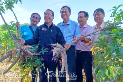 | Lãnh đạo Sở NN&PTNT An Giang cùng lãnh đạo Tập đoàn Sao Mai phấn khởi trước vụ mì năm 2019 tại huyện Tịnh Biên. |