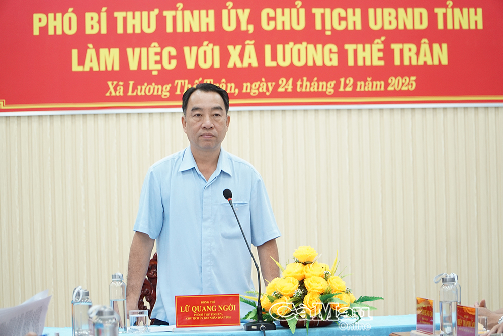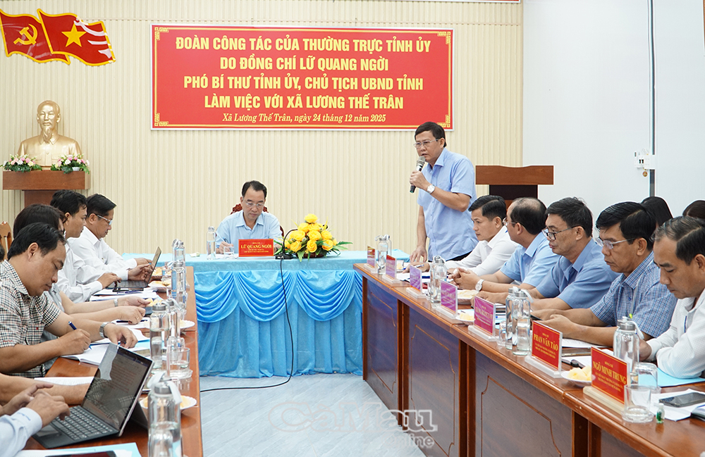 Báo Cà Mau Đây là nhấn mạnh của đồng chí Lữ Quang Ngời, Phó Bí thư Tỉnh uỷ, Chủ tịch UBND tỉnh Cà Mau tại buổi làm việc với Đảng uỷ Xã Lương Thế Trân ngày 24/12.