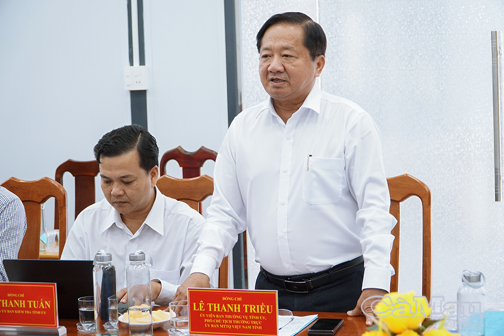 Đồng chí Lê Thanh Triều, Uỷ viên Ban Thường vụ Tỉnh uỷ, Phó Chủ tịch Thường trực Uỷ ban MTTQ Việt Nam tỉnh Cà Mau, phát biểu tại buổi làm việc, nhấn mạnh: "Cần khai thác lợi thế về tiềm năng, không gian phát triển sau khi sắp xếp để thúc đẩy sự phát triển của Xã Lương Thế Trân nhanh hơn, mạnh hơn, bền vững hơn".