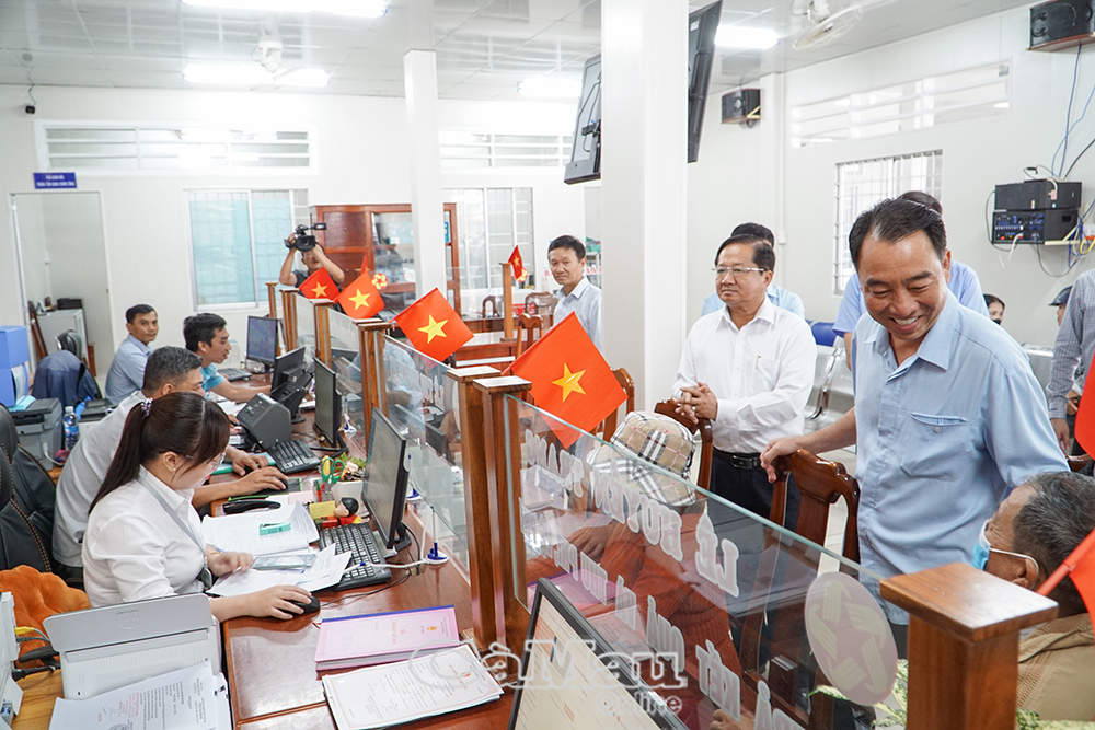 Chủ tịch UBND tỉnh Lữ Quang Ngời cùng đoàn công tác kiểm tra tình hình hoạt động của Trung tâm Phục vụ hành chính công của xã, đồng thời trực tiếp ghi nhận thực tiễn, động viên người dân và đội ngũ cán bộ, công chức Xã Lương Thế Trân.