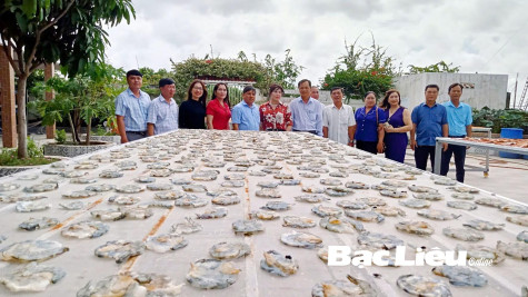 Đoàn khảo sát của Ban Thi đua - Khen thưởng tỉnh tham quan, khảo sát mô hình sản xuất sản phẩm OCOP tại Cơ sở Thanh Thủy PP (xã Điền Hải, huyện Đông Hải). Ảnh: K.K