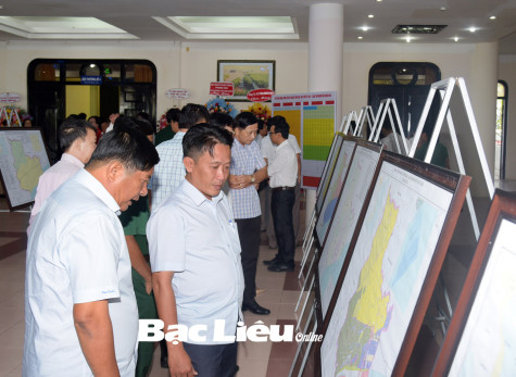 Đại biểu xem bản đồ chi tiết quy hoạch tỉnh Bạc Liêu. Ảnh: H.T