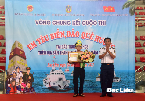 Cụ thể, giải Nhất thuộc về TS Nguyễn Dương Thành Đạt (lớp 6/2, Trường THCS Lê Thị Cẩm Lệ); 2 giải Nhì được trao cho TS Lâm Nguyễn Kỳ Quang (lớp 8/1, Trường THCS Trần Văn Ơn) và TS Võ Tấn Sang (lớp 8/4, Trường THCS Võ Thị Sáu). Ngoài ra, còn trao 3 giải Ba và 4 giải Khuyến khích cho các TS còn lại. Dịp này, Bộ Tư lệnh Vùng Cảnh sát biển 4 còn trao tặng 80 suất quà cho các em học sinh có hoàn cảnh khó khăn, học giỏi trên địa bàn TP. Bạc Liêu.