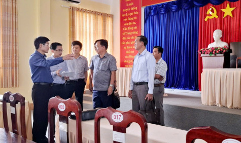 Phó Bí thư Thường trực Tỉnh ủy - Huỳnh Quốc Việt kiểm tra công tác chuẩn bị đại hội cấp cơ sở tại xã Vĩnh Mỹ A (huyện Hòa Bình). Ảnh: M.Đ