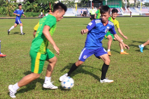 Trận bóng đá kích tính, hấp dẫn giữa đội Tôm giống Đại Nghĩa và Quán Ốc Đảo sau lễ khai mạc.