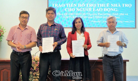 Đây là các lao động đang làm việc tại Công ty Cổ phần Chế biến và Dịch vụ Thuỷ Sản Cà Mau (Cases), Công ty Cổ phần Tập đoàn Thuỷ sản Minh Phú và Công ty Kiến Trúc Xanh. Chiều 25/5, Phòng Lao động, Thương binh và Xã hội TP. Cà Mau tổ chức lễ trao tiền hỗ trợ thuê nhà cho người lao động đang làm việc tại các công ty trên địa bàn thành phố trong diện được hỗ trợ.