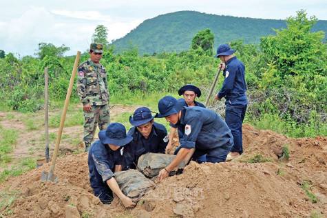 | Đội K92 đang cất bốc hài cốt liệt sĩ. |