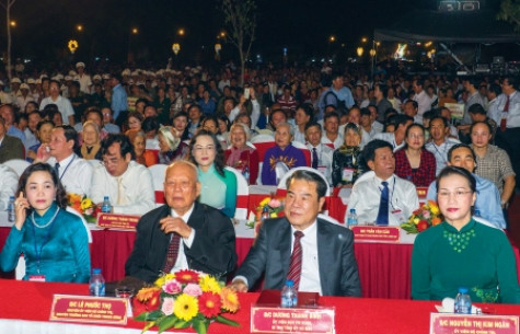 | Từ phải sang: Chủ tịch Quốc hội Nguyễn Thị Kim Ngân, Bí thư Tỉnh uỷ Cà Mau Dương Thanh Bình, các đồng chí nguyên lãnh đạo các bộ, ngành Trung ương cùng đông đảo cán bộ, quân và dân tỉnh Cà Mau tại lễ kỷ niệm 20 năm tái lập tỉnh. Ảnh: THANH QUANG |