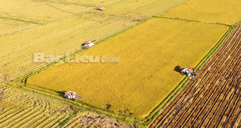 Nông dân huyện Vĩnh Lợi thu hoạch vụ lúa đông xuân.