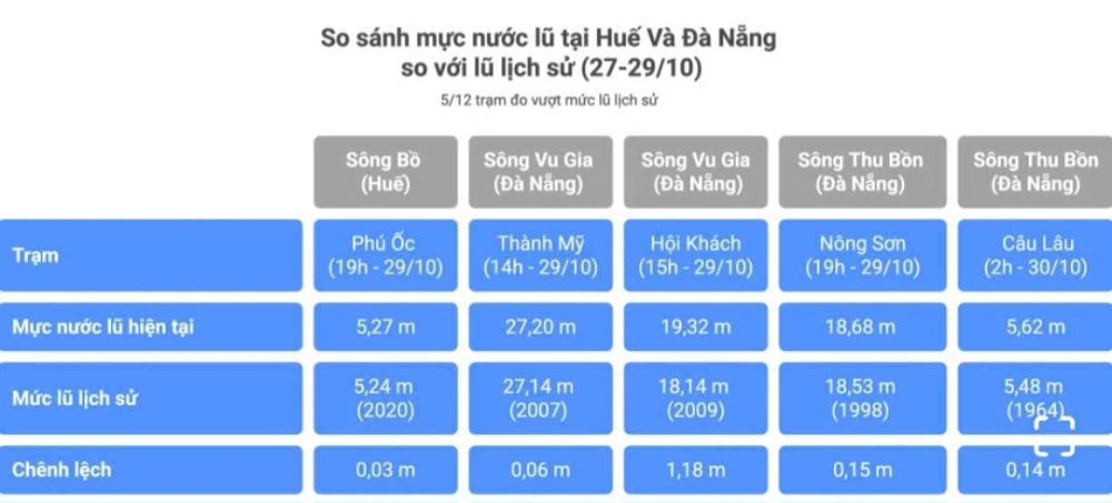 Các kỷ lục lũ được xác lập trong đợt mưa lũ từ 26 đến 30/10 tại miền Trung.