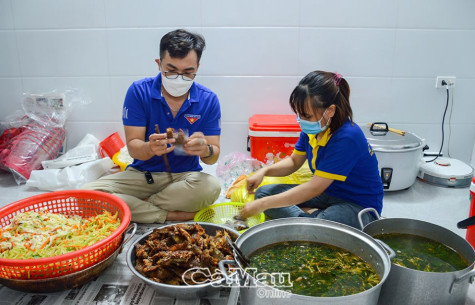 Trong hành trình của bếp, có bếp trưởng Chế Thị Huệ (Trung tâm Tin học - Ngoại ngữ, Phân hiệu Trường Ðại học Bình Dương tại Cà Mau). Nấu bếp mà canh cánh nỗi lo chồng và hai con đang bên vùng dịch của huyện Vĩnh Thuận, tỉnh Kiên Giang. Hơn tháng chị chưa được gặp hai con nhỏ, chồng cũng là cán bộ của xã đang ngày đêm căng mình chống dịch. Có những khoảng lặng tôi thấy chị rơm rớm nước mắt khi kết thúc cuộc gọi video với con. Chiến đấu cùng bếp hơn tuần đầu, chị Huệ quyết định đón con về nhà ba ruột ở Thới Bình và cách ly tại nhà 14 ngày, nhưng vẫn dõi theo bếp.