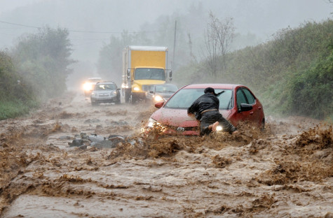 Người dân địa phương giúp kéo ô tô bị mắc kẹt do lũ ở Bắc Carolina, Mỹ ngày 27-9. Ảnh: Reuters