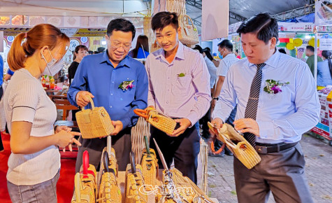 | Phó chủ tịch UBND tỉnh Lê Văn Sử (bìa phải) và Phó chủ tịch HĐND tỉnh Dương Huỳnh Khải (thứ 2 từ trái sang) tham quan gian hàng trưng bày các sản phẩm OCOP, sản phẩm công nghiệp nông thôn tiêu biểu của Tỉnh đoàn Cà Mau. |