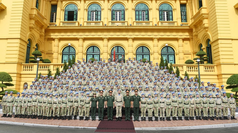 Cán bộ, nhân viên Đội công binh số 3 và Bệnh viện dã chiến cấp 2 số 6 của Việt Nam chuẩn bị tham gia hoạt động gìn giữ hòa bình Liên hợp quốc. Ảnh: TUẤN HUY