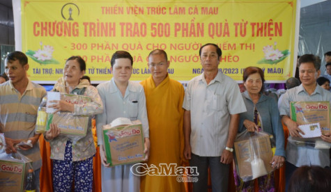 500 phần quà trị giá gần 250 triệu đồng được trao tặng lần này do Thiền viện Trúc Lâm Cà Mau, các phật tử, mạnh thường quân trong và ngoài nước tài trợ. Mỗi phần quà gồm gạo, nhu yếu phẩm và tiền mặt.