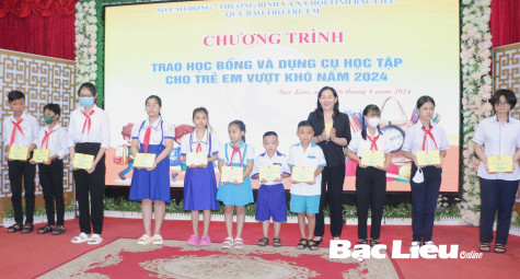 Chiều 26/8, Quỹ Bảo trợ trẻ em tỉnh Bạc Liêu tổ chức lễ trao học bổng và dụng cụ học tập cho trẻ em có hoàn cảnh khó khăn trên địa bàn tỉnh. Dự lễ có lãnh đạo các sở, ban, ngành cấp tỉnh.