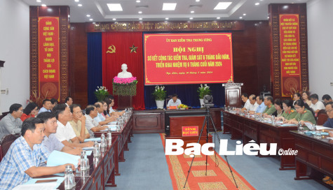 (BL-HL) Ngày 10/7, Ủy ban Kiểm tra (UBKT) Trung ương tổ chức hội nghị trực tuyến toàn quốc sơ kết công tác kiểm tra, giám sát 6 tháng đầu năm, triển khai nhiệm vụ 6 tháng cuối năm 2024. Đồng chí Trần Cẩm Tú - Ủy viên Bộ Chính trị, Bí thư Trung ương Đảng, Chủ nhiệm UBKT Trung ương chủ trì tại điểm cầu Hà Nội. Dự và chủ trì điểm cầu Bạc Liêu có đồng chí Vương Phương Nam - Chủ nhiệm UBKT Tỉnh ủy.