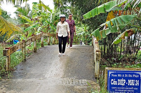 | Cầu Diệp - Mai 24 là 1 trong 4 cây cầu do Trưởng ấp Kinh Chùa Trần Thị Lan vận động mở rộng, hạn chế tai nạn cho người dân khi tham gia giao thông. |