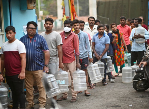 Người dân xếp hàng lấy nước uống tại TP. Bengaluru. Ảnh: Internet