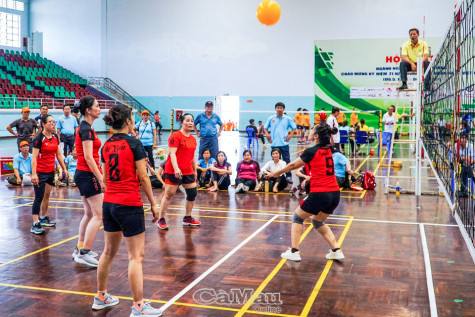 | Các đội thi đấu quyết liệt ở môn Bóng chuyền hơi nữ. |