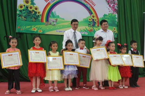 Lãnh đạo Sở GD&ĐT tỉnh Cà Mau trao giải A cho các bé xuất sắc.