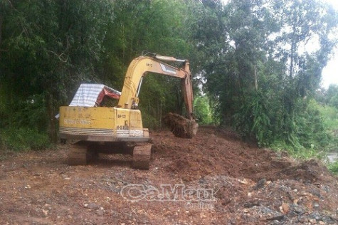 Hiện trường xâm hại tuyến lộ và sang lấp đường kẹp ven lộ Xuyên Á ở ấp Hữu Thời, xã Biển Bạch Đông.