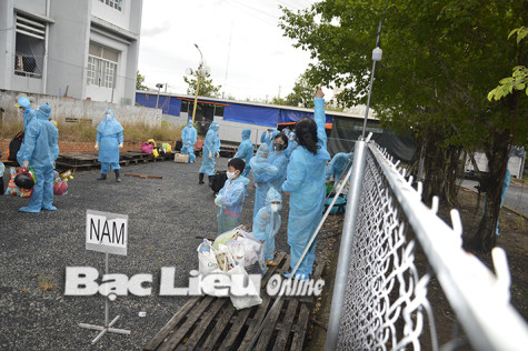 Người dân về từ vùng dịch được đưa vào khu cách ly tập trung Khu nhà ở sinh viên (phường 1, Thành phố Bạc Liêu).