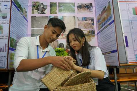 Dự án “Túi sinh học từ phế thải bồn bồn” của đơn vị trường THPT Phú Hưng, huyện Cái Nước. |